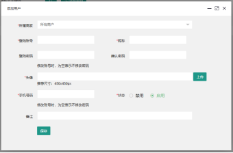 點擊“添加用戶”,即可彈出添加界面: