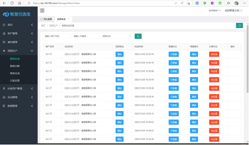 視頻合成功能,即為查看系統自動混剪的視頻結果的列表,管理員可在此查看視頻的混剪結果,以及是否已被分享等.