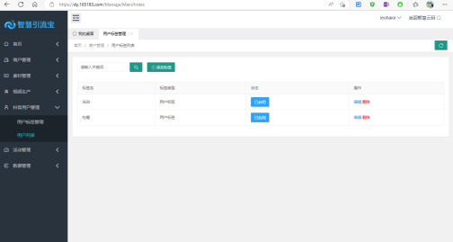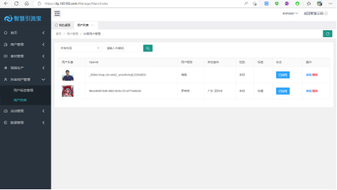 此處即為所有掃過活動二維碼的抖音用戶列表,用戶在掃活動二維碼時,系統會自動讀取其抖音頭像、昵稱、openId,商家則可以用戶列表中,再對其資料進行完善,如所屬地域、標簽等。