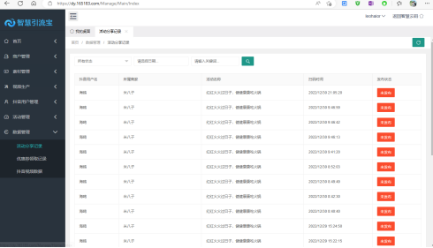 此處為所有使用抖音掃描活動二維碼的用戶記錄,包含掃碼人、掃碼時間,以及是否發布視等。