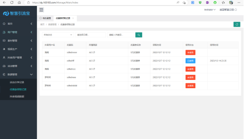 此處為所有優惠券的領取記錄,包含領取人,優惠碼、領取時間、使用狀態、使用時間等。