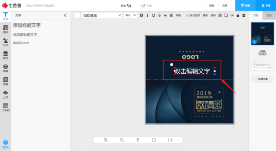 這時可見畫布中央出現了對應大小的一個元素《雙擊編輯文字》,雙擊該元素即可修改文字內容