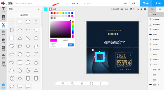 利用七色魚平臺,30秒就可以完成作品設計,還可一鍵下單定制印刷。