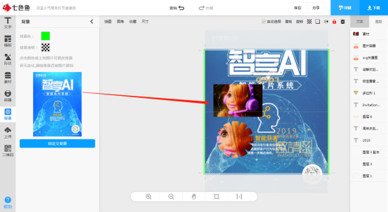 通過自定義背景圖片功能,用戶可以快速將一張圖片作為背景填充到畫布中,本功 能與背景色可同時使用