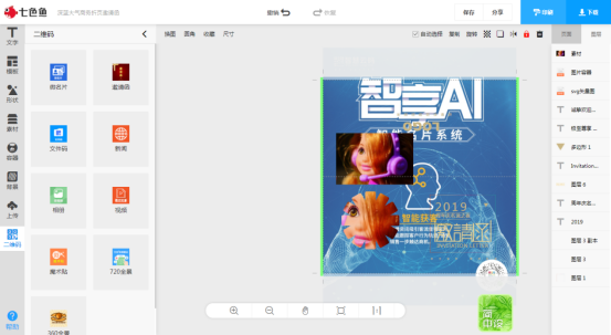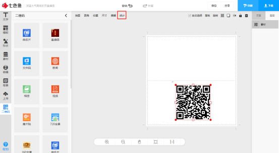 該功能區提供多種元素供用戶使用,比如添加文字、圖片、二維碼等等,詳見下文