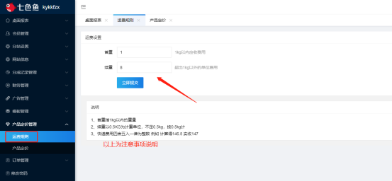 1.運費定價規則設置,注意事項說明,如下圖所示: