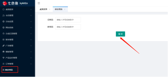 管理員賬號可自行修改密碼,需要驗證舊密碼和輸入新密碼,保存后即修改成功,如下圖所示: