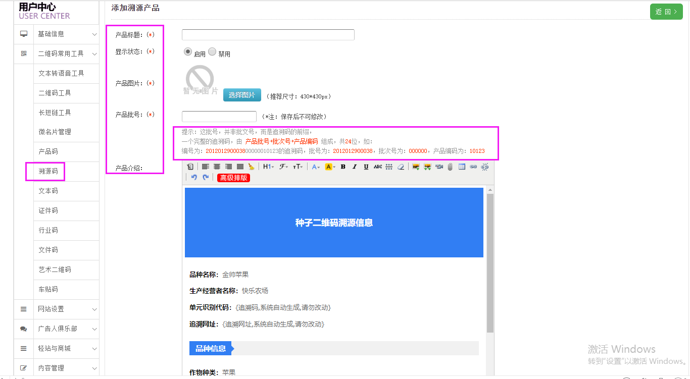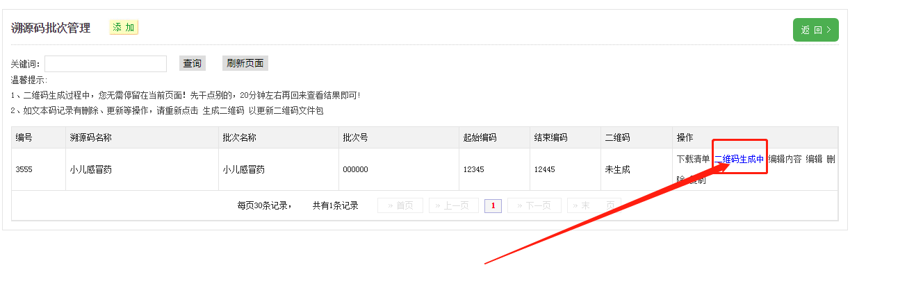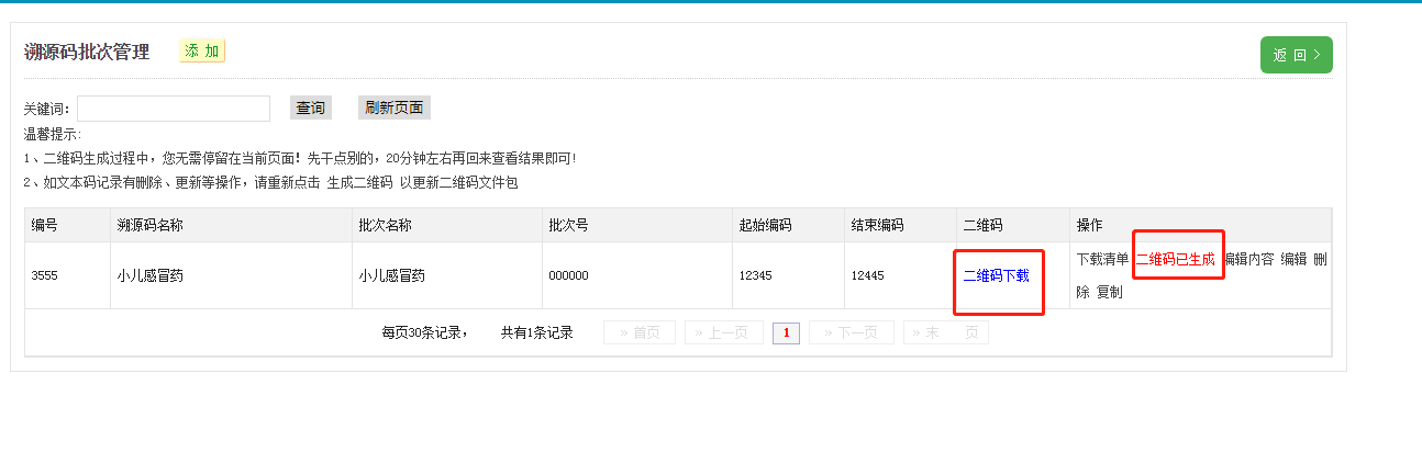 注意:溯源碼生成后不可再修改,一旦修改,原生成的碼會失效。