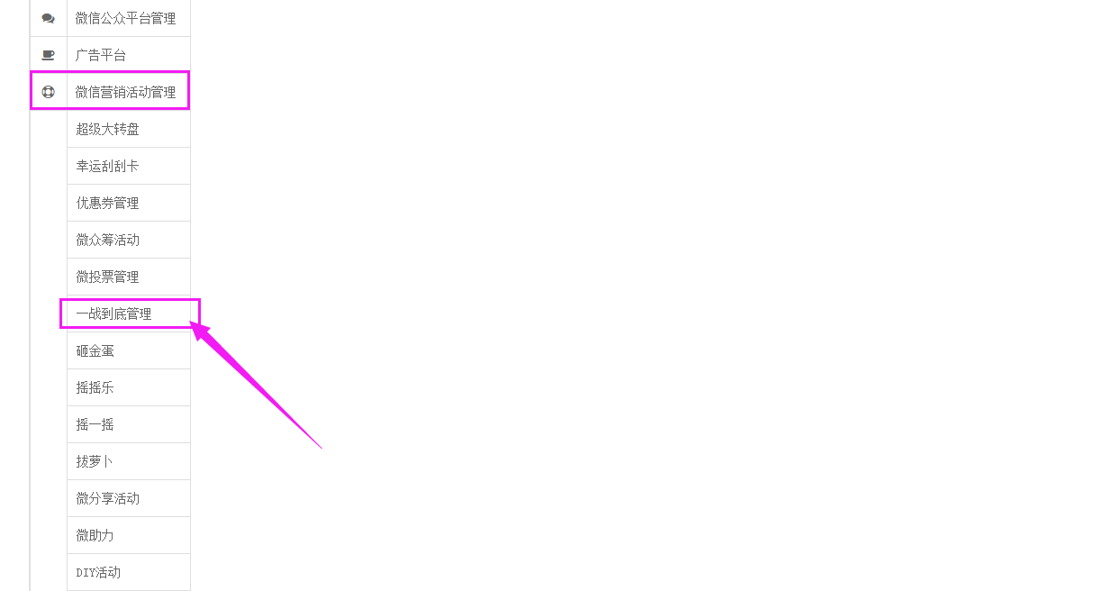 1、登錄智慧云碼系統(tǒng),點擊微信營銷活動管理,進(jìn)入一戰(zhàn)到底活動,點擊添加如下圖所示: