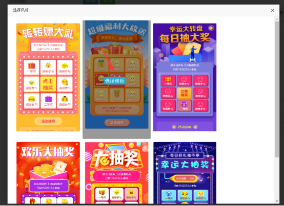 第三步,根據(jù)個(gè)人喜好選擇游戲模板樣式,如下圖所示: