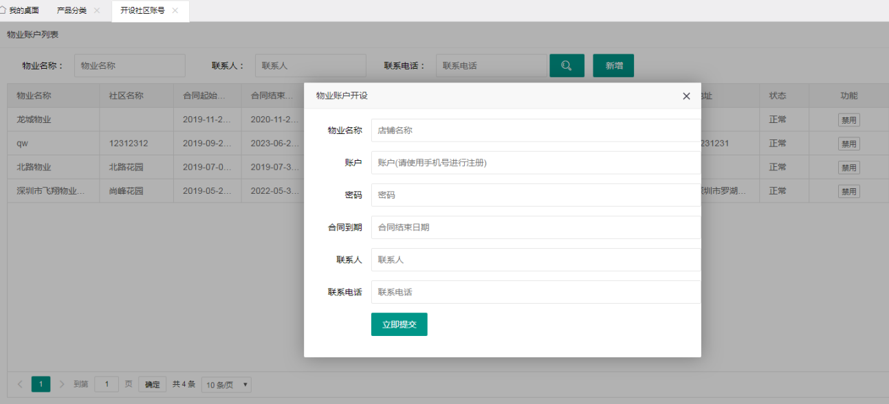 2、智慧社區商家管理后臺:http://shop.kyk115.com/user/login