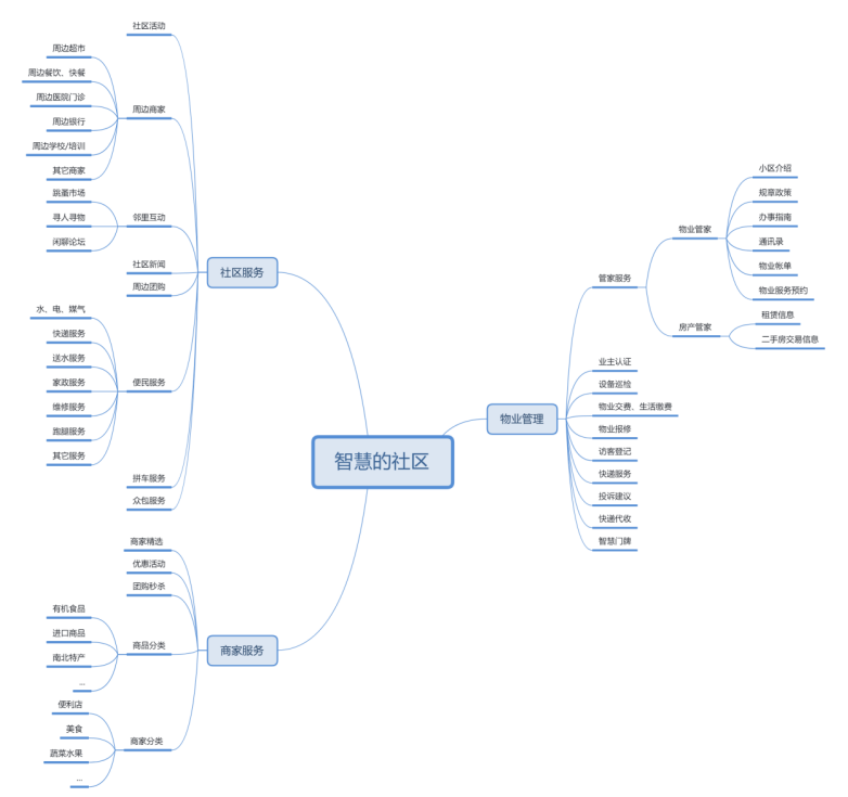 2、關于智慧的社區思維導圖框架介紹;如下所示: