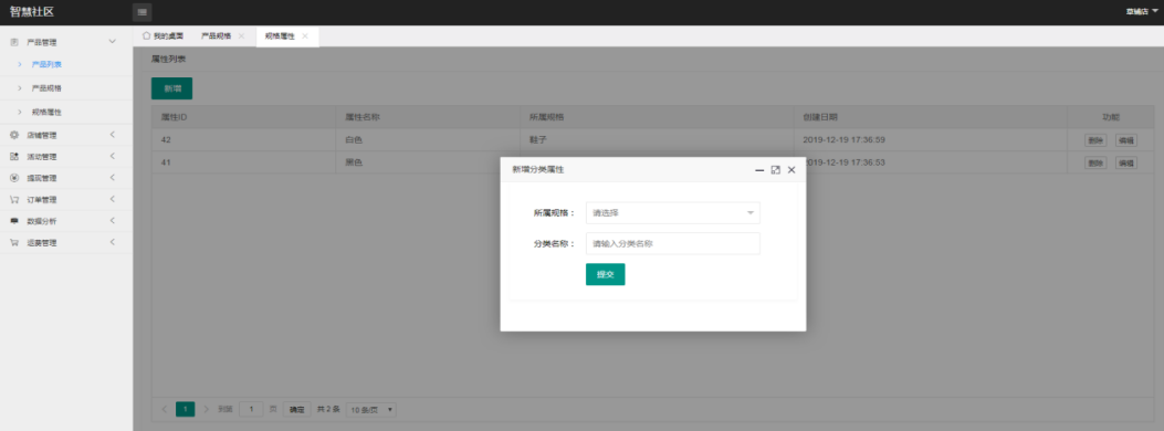 3.1.3、關于規格屬性-新增分類屬性。如下圖所示: