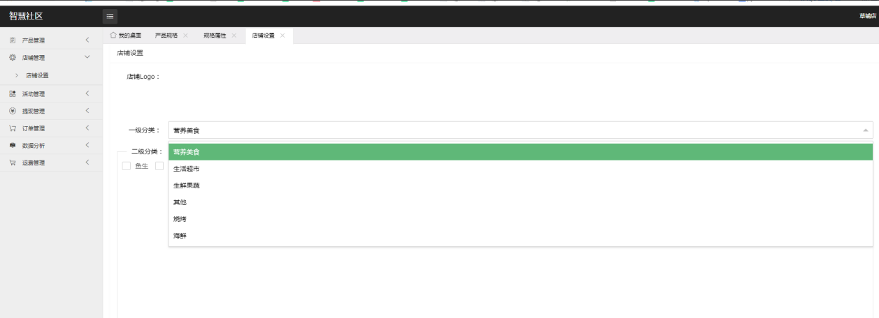 店鋪管理是定位店鋪的屬于那一個行業,行業中主要是賣什么商品。如下圖所示: