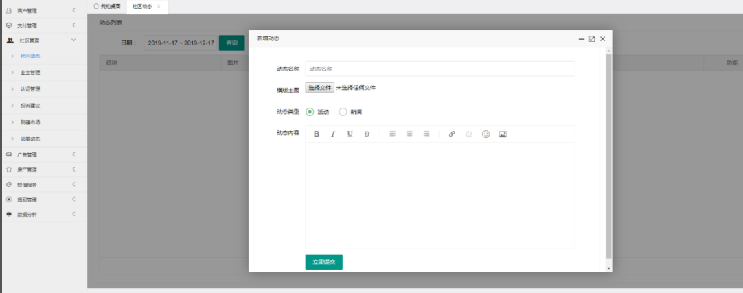3.3.1、關于社區動態-新建動態。如下圖所示: