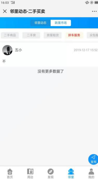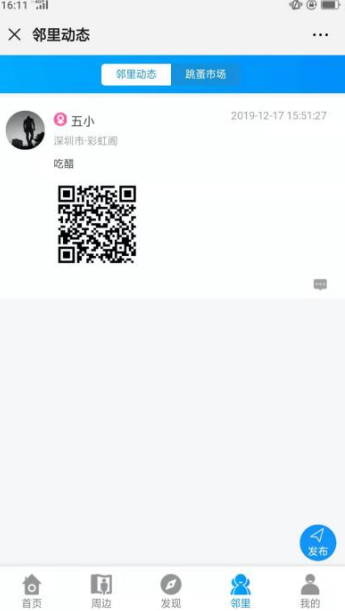 3.3.5、關于前臺發布鄰里動態。如下圖所示: