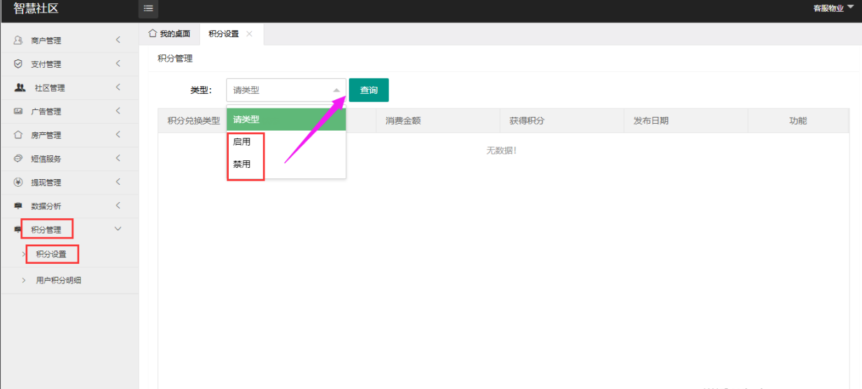 4.4.1、 積分管理可在點擊后用于了解用戶積分相關明細以及對應查詢積分兌換情況等,如下所示: