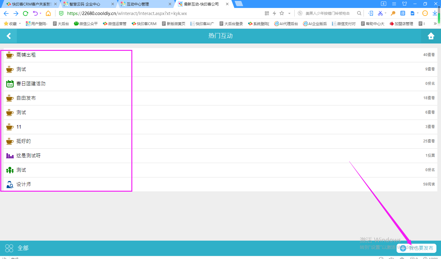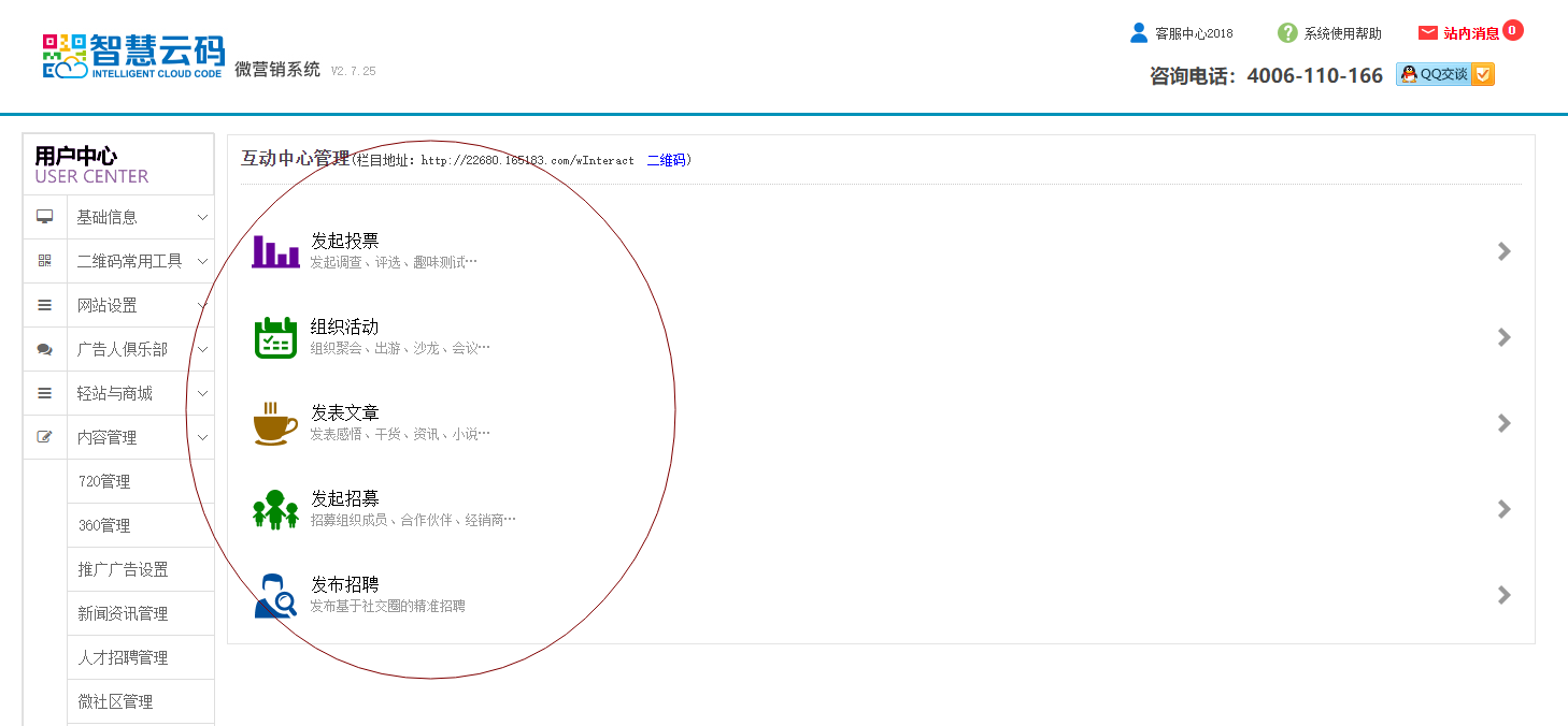 互動中心的內(nèi)容可以由平臺管理者發(fā)布,也可以由終端客戶去發(fā)布。發(fā)布的內(nèi)容包括簡單投票,組織活動,發(fā)表感想,招募等等。