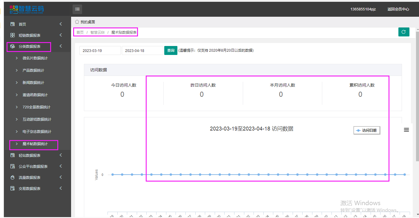 7、點擊“統(tǒng)計”,便可查看魔術(shù)貼數(shù)據(jù)報表統(tǒng)計分析,如下圖所示:
