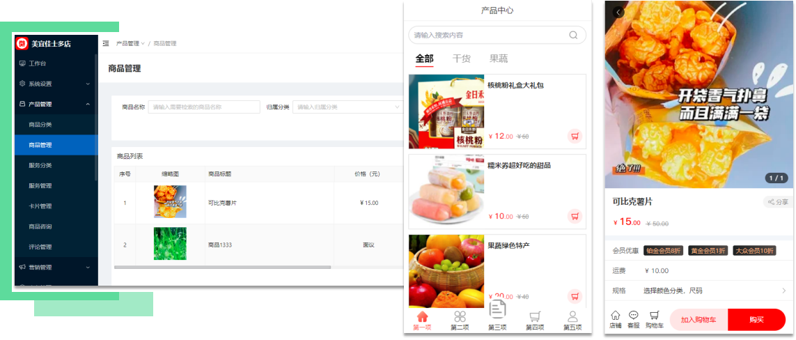 構建鄉村電商商城平臺,可發布鄉村農產品、特產,工藝品等,把鄉村產品搬到了線上,在線銷售,集成秒殺、拼團、助力、砍價、眾籌、積分兌換等多種營銷活動,形成產品傳播,提高產品曝光度、產品銷量,促進成交。實現農產品出村面向廣大消費者,振興產業、振興地方經濟。