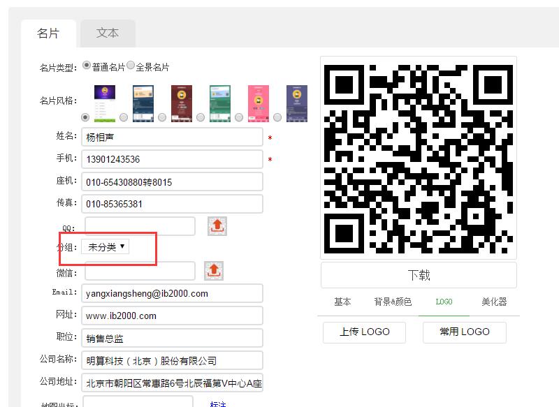 在添加/編輯名片信息時,選擇對應的分組,即可將名片劃下該分組下
