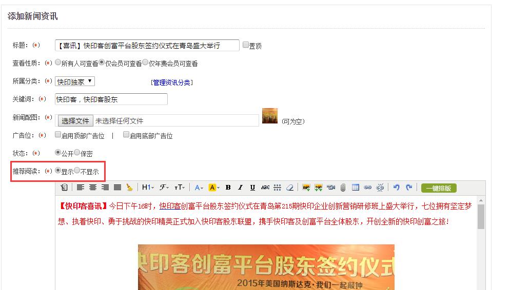 4、新聞、文本,新增是否顯示推薦閱讀相關資訊功能。對于特殊類型的資訊及文本,可選擇關閉推薦功能