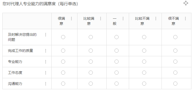 3、增加矩陣單選組件,效果如下圖示: