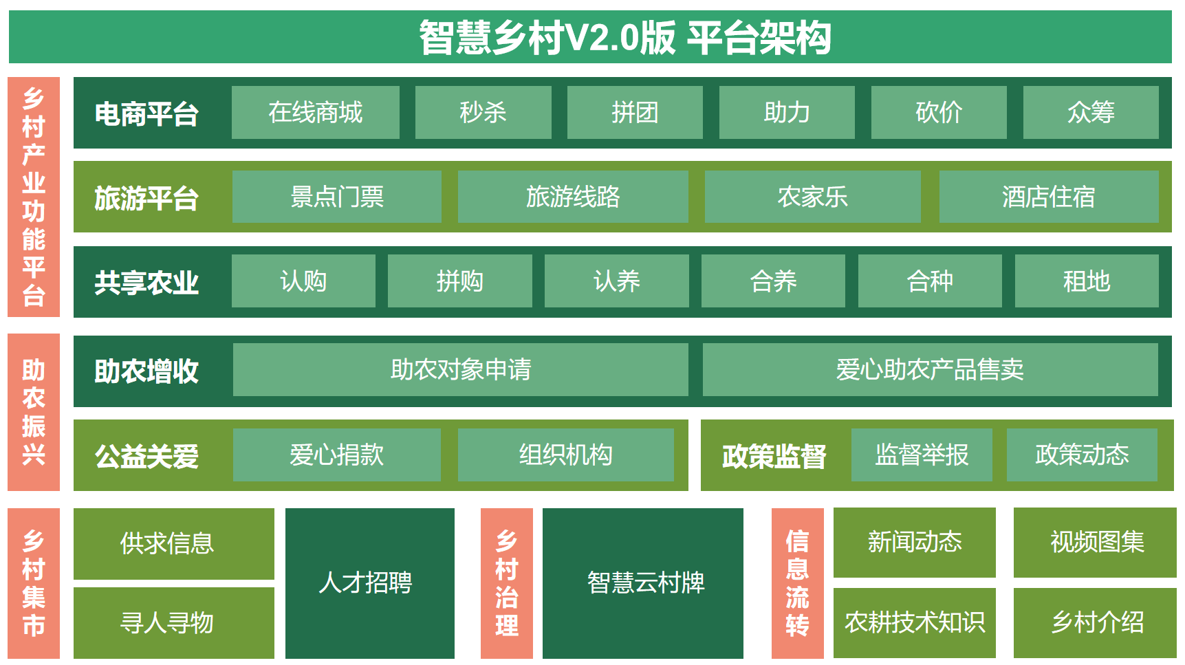 相對于智慧鄉村V1.0版,本次V2.0版主要帶來以下變化: