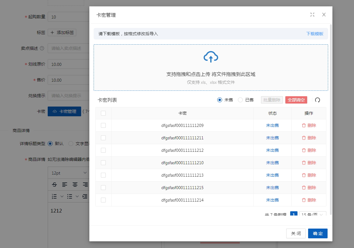 卡密商品可導入,可管理,輕松對接卡密的使用