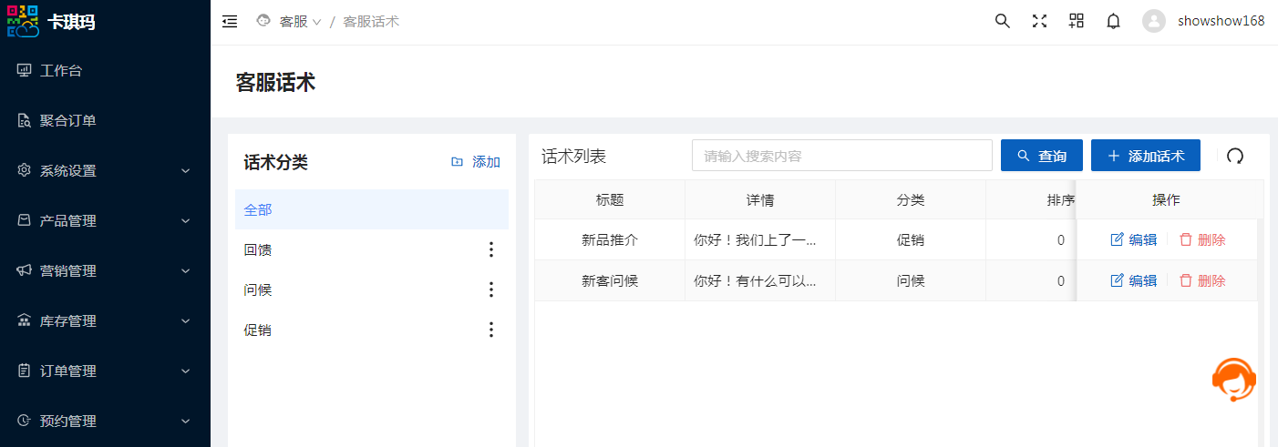 1、話術管理,可預設話術,讓客服可快速回復客戶。
