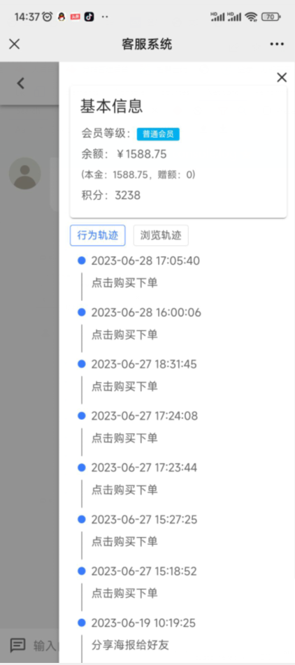 6、用戶雷達,捕捉用戶行為軌跡和瀏覽記錄,賦能客服促成單