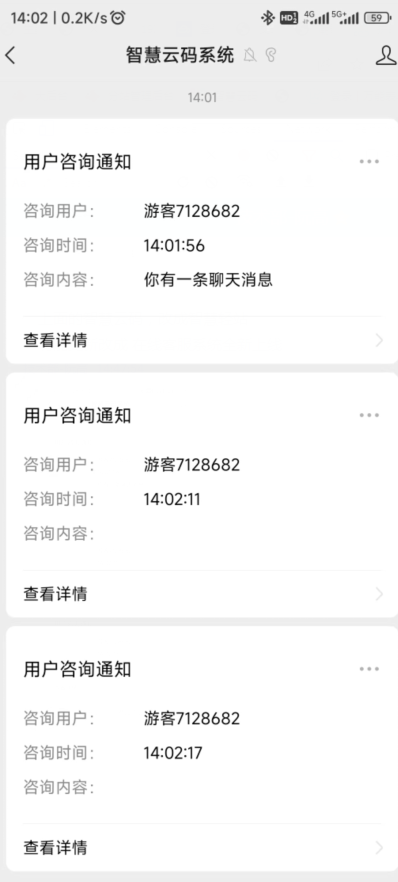 7、客服離線或用戶留言時,將在微信推送提醒消息給客服人員