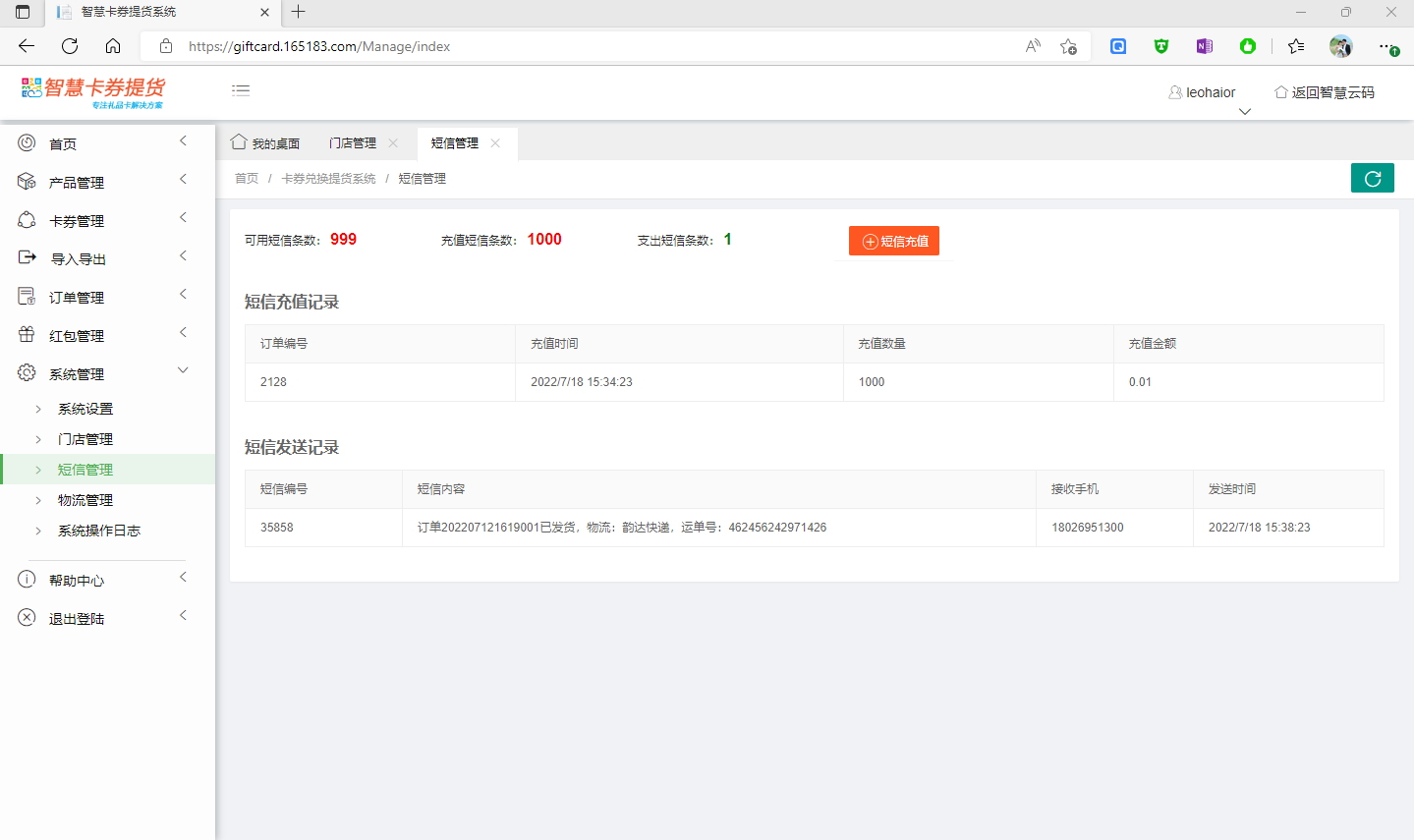 1.3短信管理