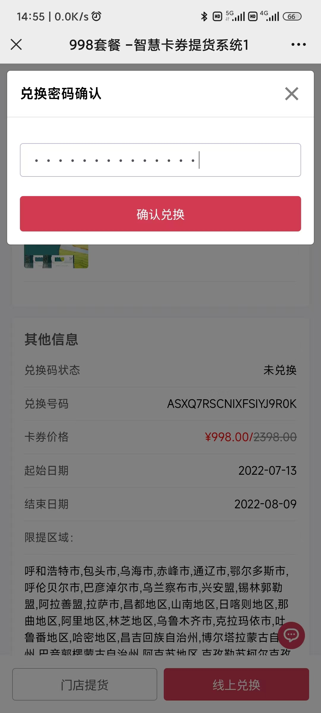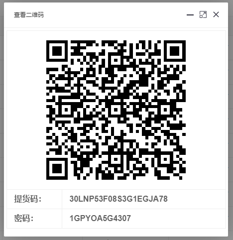 點(diǎn)擊提貨碼,可彈出提貨網(wǎng)址,掃碼可預(yù)覽提貨效果。如下圖所示: