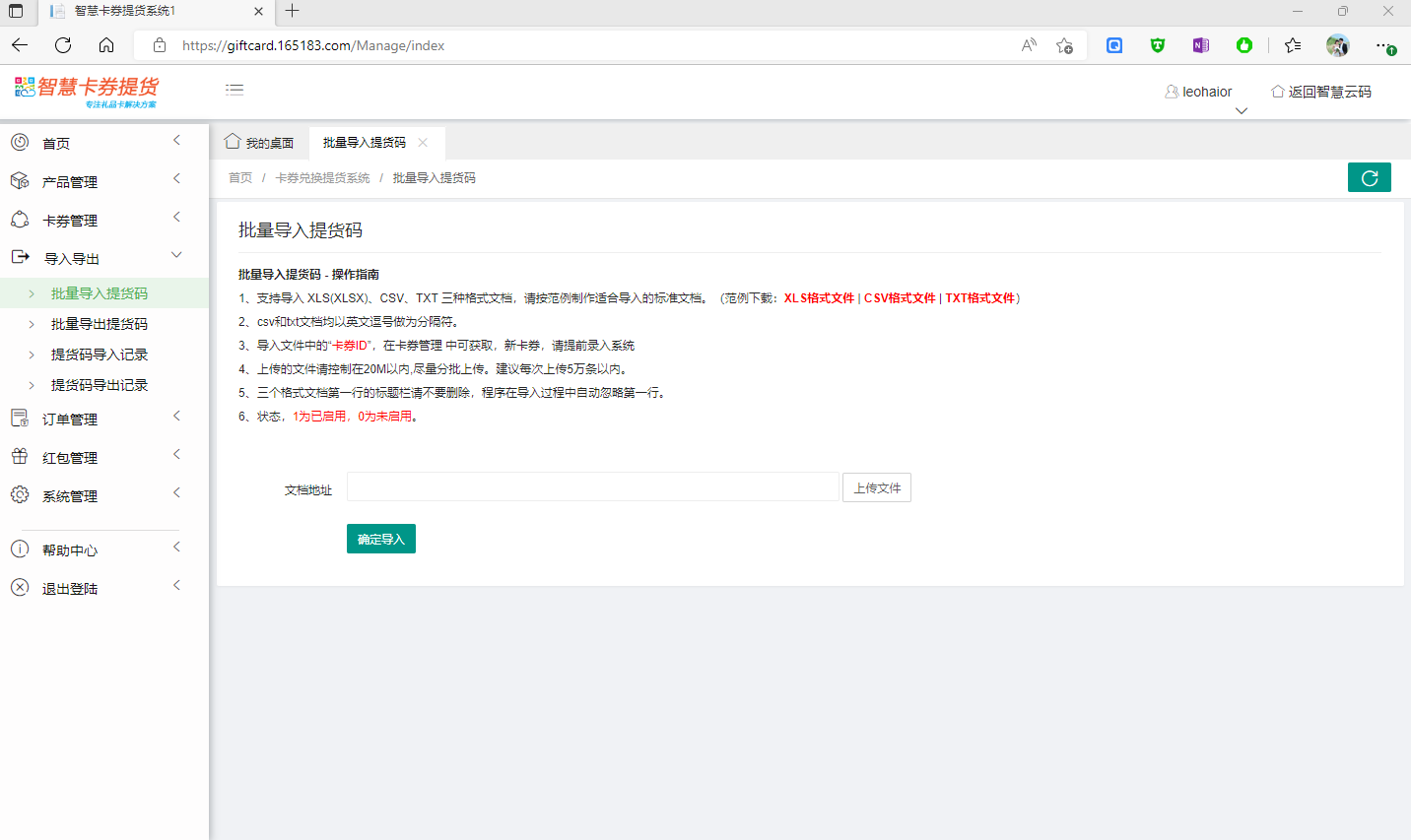 4.1 批量導(dǎo)入提貨碼