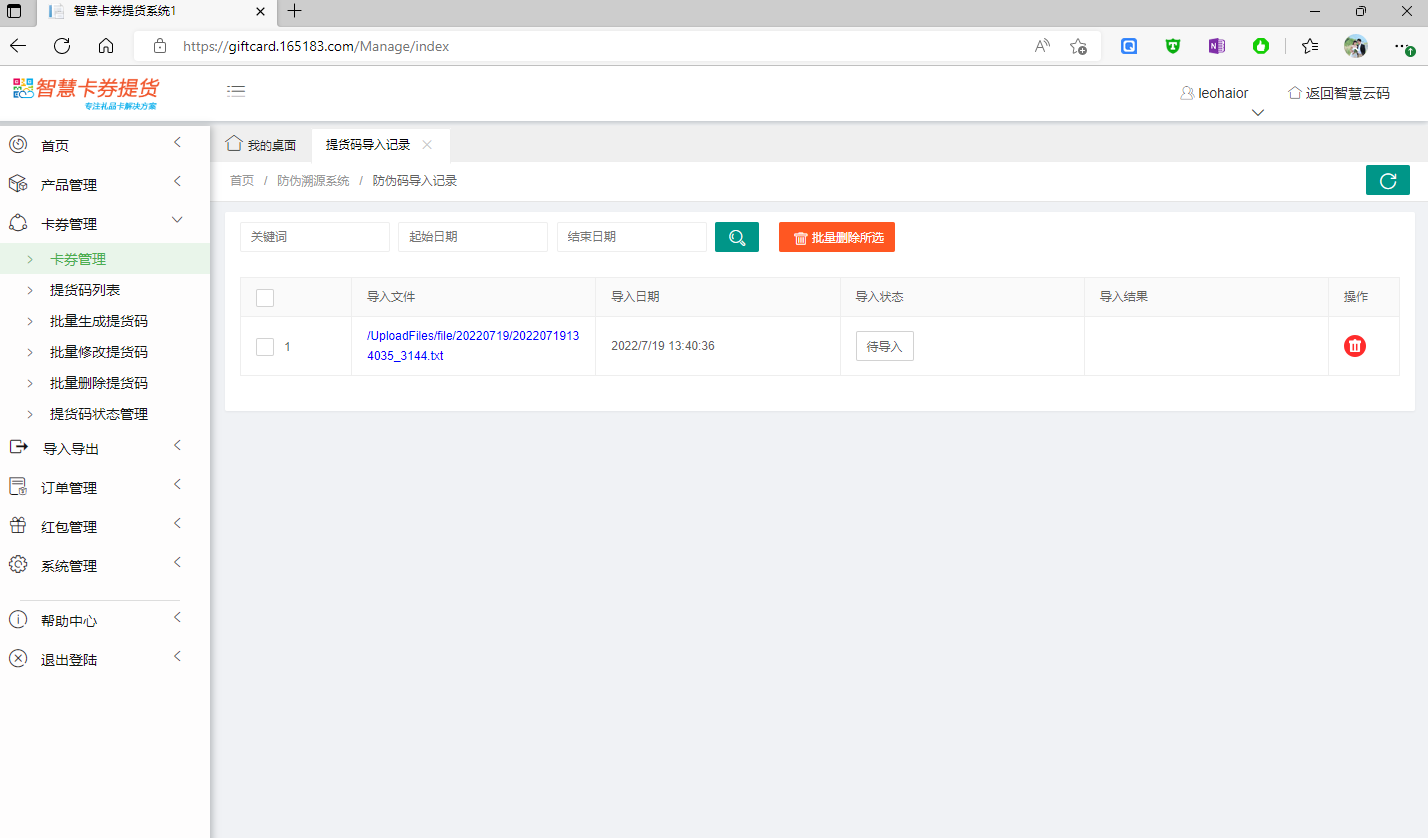 4.3 提貨碼導(dǎo)入記錄