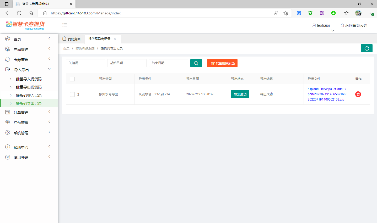 4.4 關(guān)于提貨碼導(dǎo)出記錄
