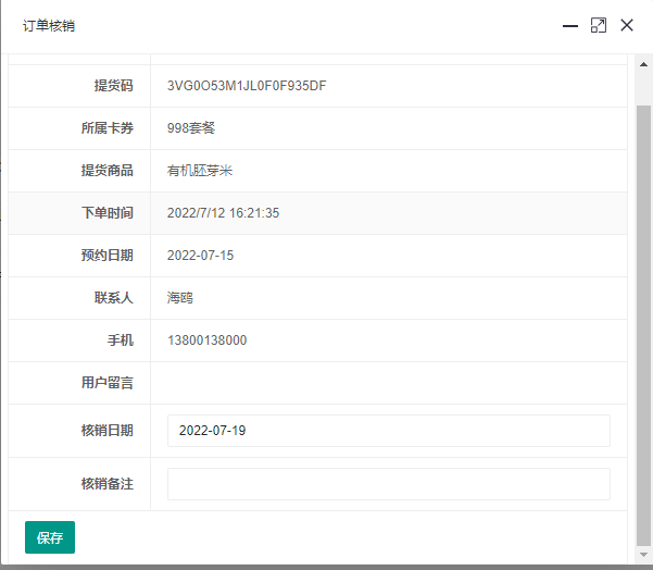 門店訂單采用核銷模式,當(dāng)用戶上門提貨時(shí),出示訂單號(hào)手機(jī)號(hào),商家在檢索到對(duì)應(yīng)訂單后,點(diǎn)擊核銷,即完成訂單。如下圖所示: