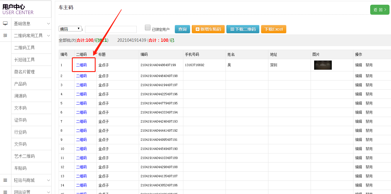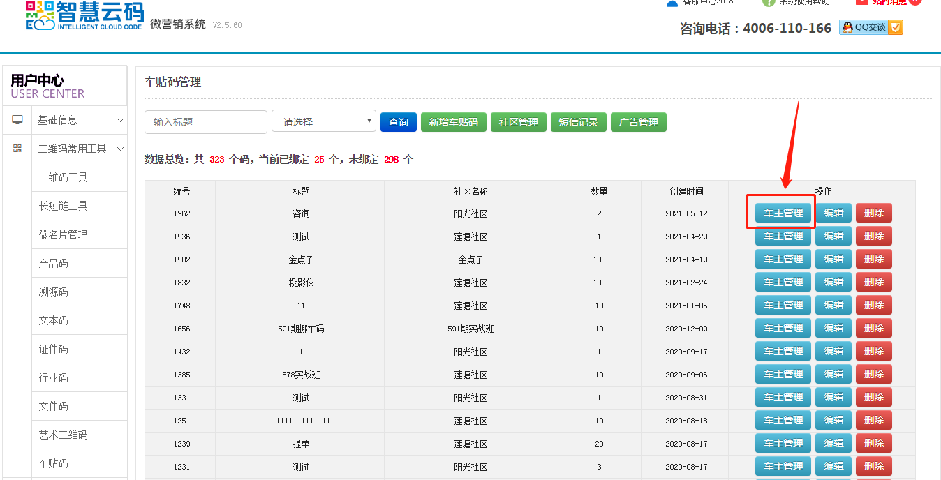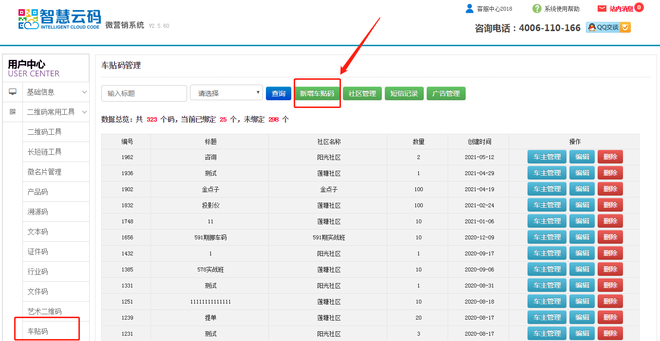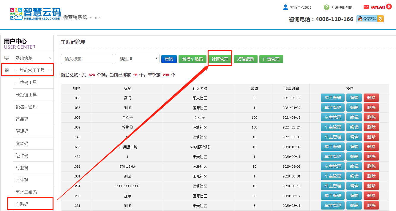 車貼碼——主要是用于智慧城市或者智慧社區(qū)中,方便管理這些區(qū)域車輛的(包括常停的電動車或小車等),給社區(qū)或街道某一個區(qū)域(可生成N個區(qū)域,無限制)生成一定數(shù)量的車貼碼,將碼發(fā)放或要求相關(guān)車輛車主到指定部門領(lǐng)取。領(lǐng)取后,掃碼綁定車主信息(這里需要用到短信驗證,需要智慧云碼系統(tǒng)提前購買短信)。一旦社區(qū)或街道管理員,巡查時,發(fā)現(xiàn)了車輛違?;蚱渌`規(guī)行為,可掃碼輸入密碼后,撥打車主電話或者直接給車主發(fā)送固定模板的違停短信,及時處理違停車輛情況,大大減少社區(qū)違?,F(xiàn)象,并能減少因違停行為導(dǎo)致的擁堵或者不必要的事故發(fā)生。