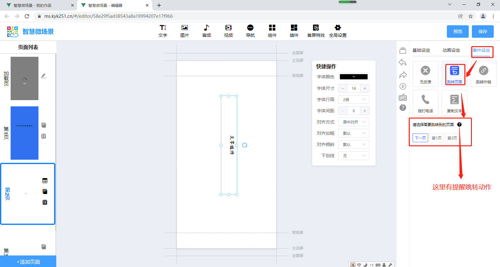 ①頁面跳轉:指跳到頁面列表里的第幾頁