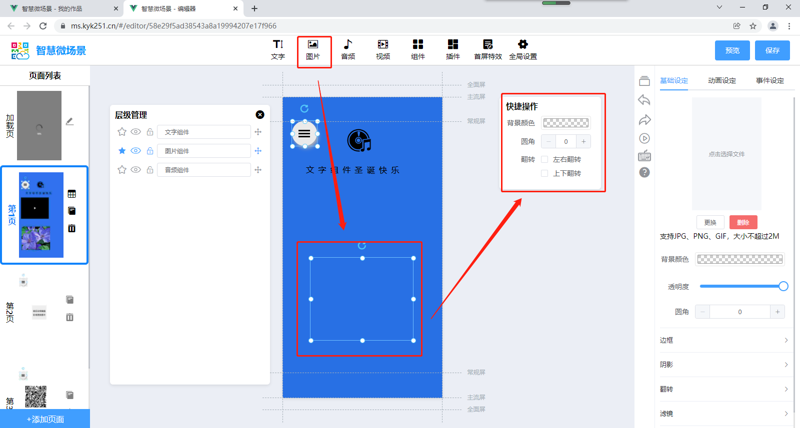 點擊圖片組件后,在頁面上增加一個圖片組件,可以更換圖片。