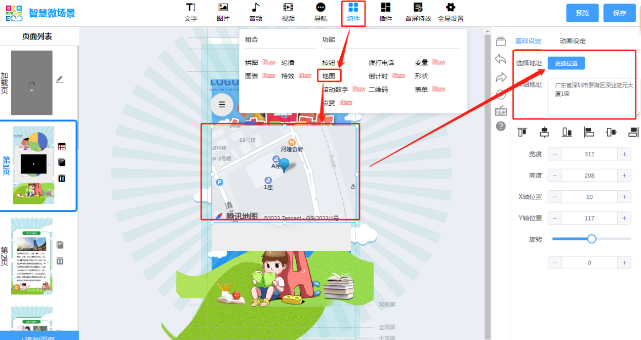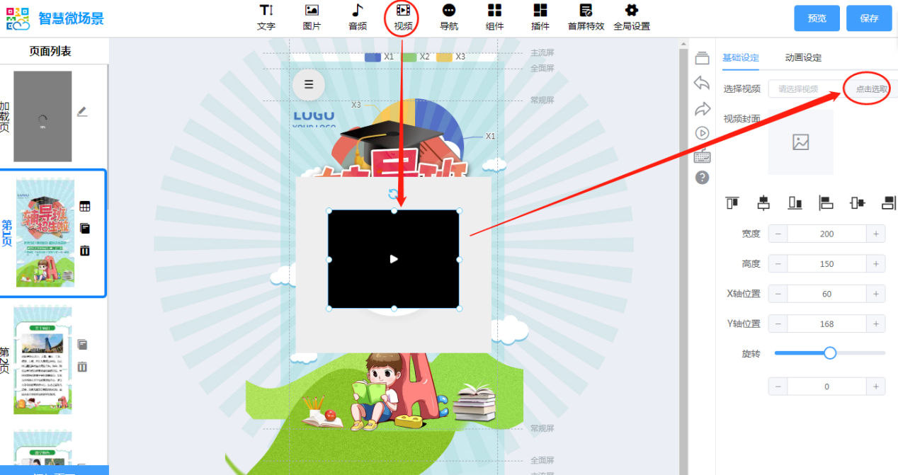 點擊視頻組件后,在頁面上增加一個視頻組件。也可以自定義更換視頻。
