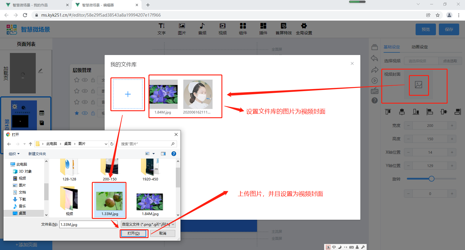自定義視頻封面,點擊視頻封面,可以選擇自己想設置的圖片,或者上傳并設置圖片。