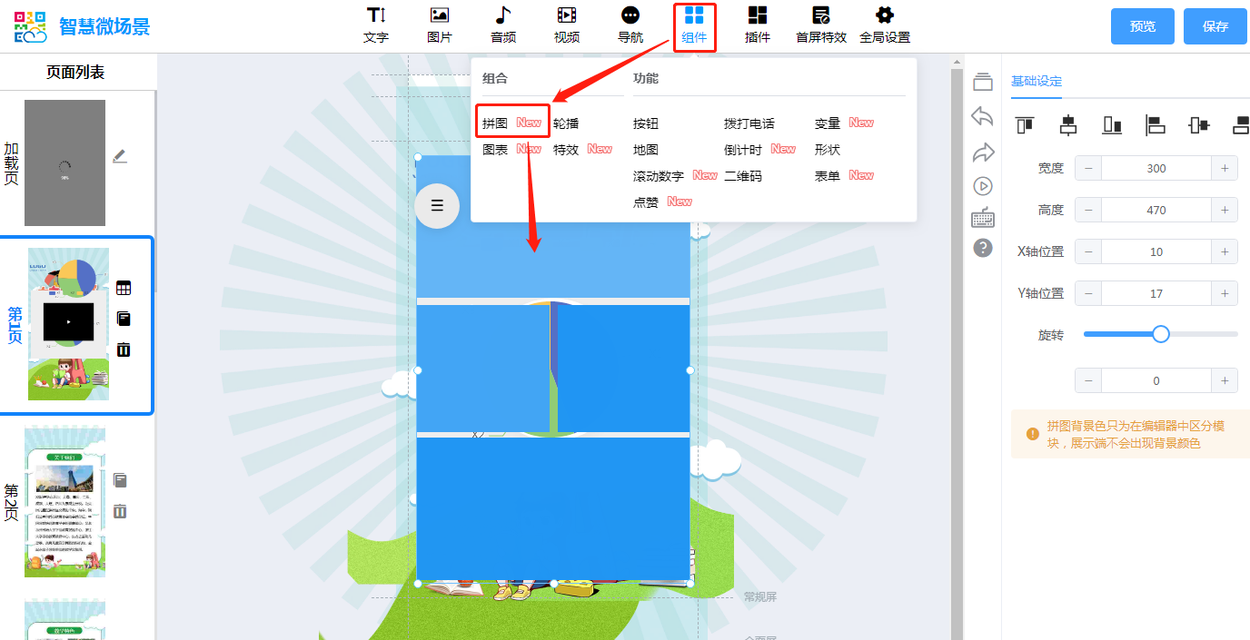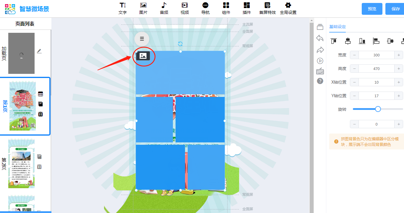 ①拼圖,選擇合適的拼圖樣式,對應選擇圖片進行上傳展示