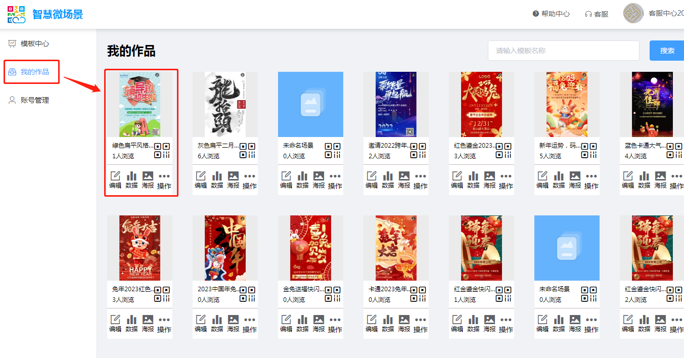 7、推廣海報,點擊我的作品-海報,可以編輯這個作品的海報信息。如下圖所示: