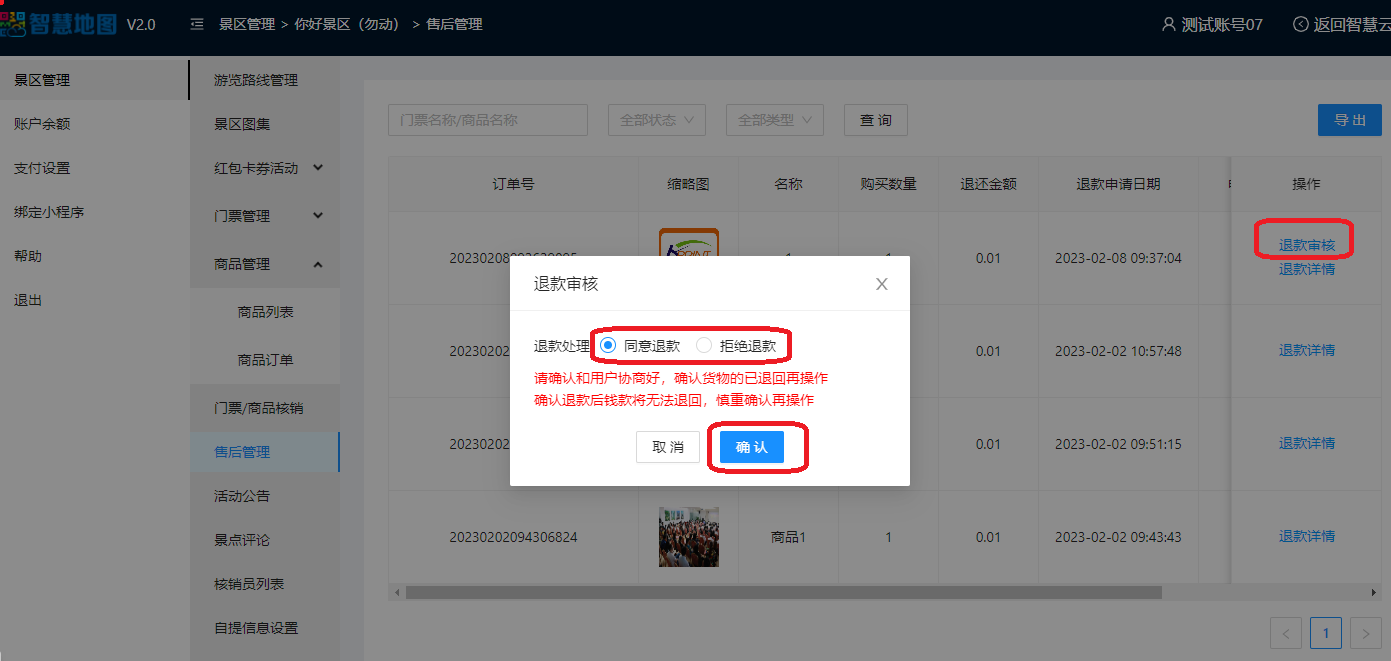 點擊售后管理中的退款審核,選擇同意退款,則訂單金額原路退回給顧客。選擇拒絕退款,顧客手機APP中的訂單售后中會顯示拒絕退款。如下圖所示: