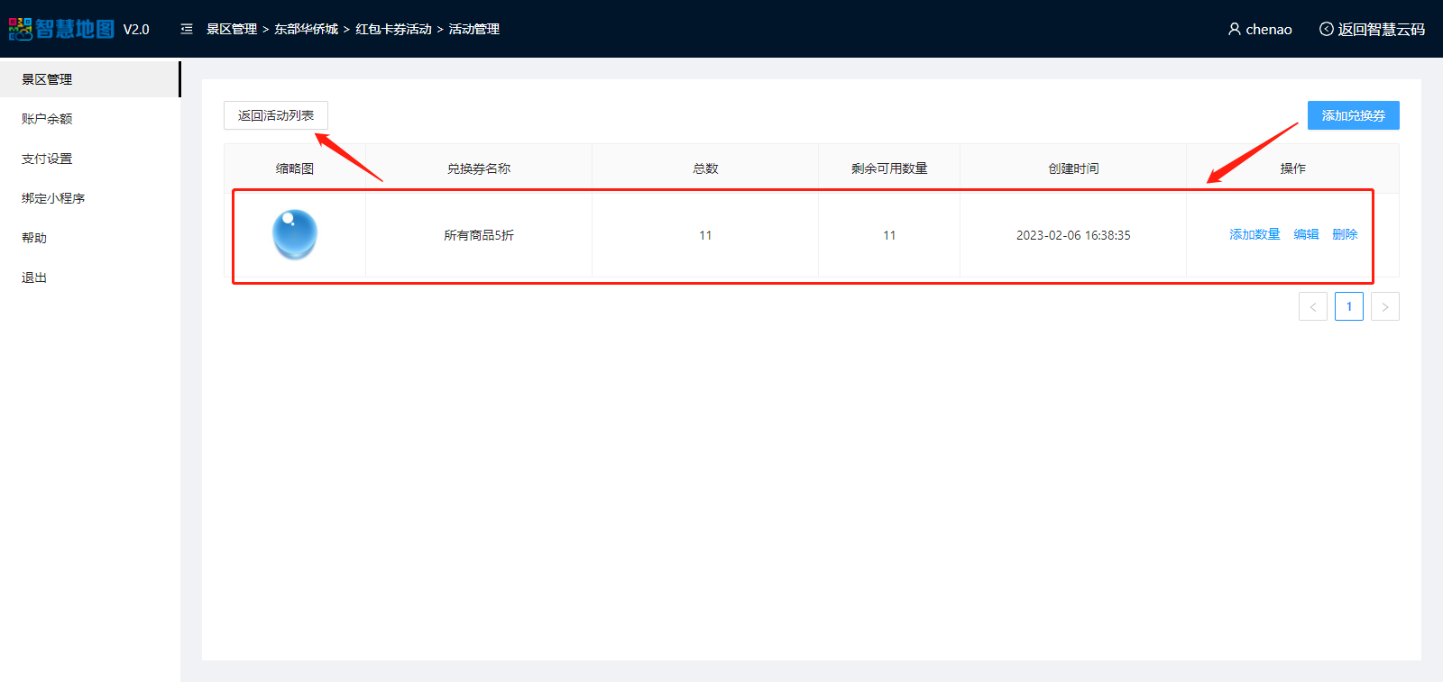 添加兌換券后如下,點擊左上角的返回活動列表。如下圖所示: