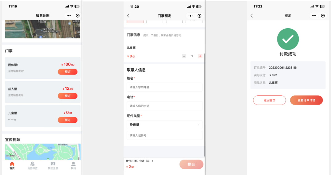在首頁點擊門票購買,輸入信息支付即可。如下圖所示: