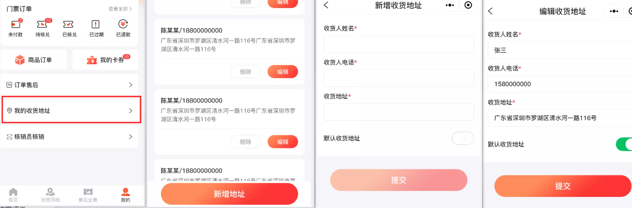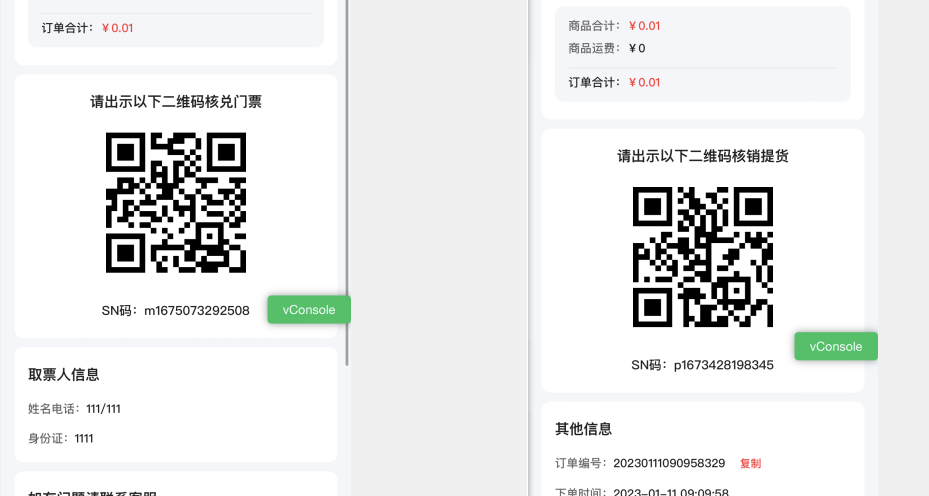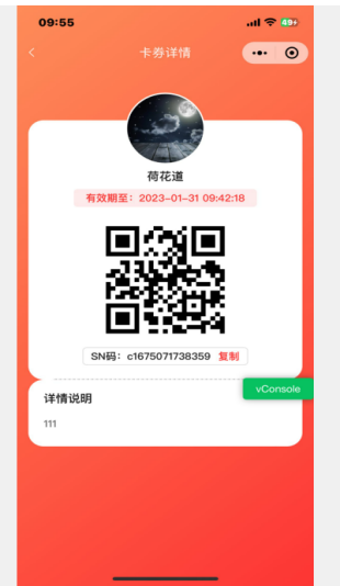 第一步進入卡券詳情,獲取到二維碼。第二步到線下景點進行核兌(門票商品同理);商品提貨碼在商品訂單詳情中查看;門票二維碼在門票訂單詳情中查看。如下圖所示: