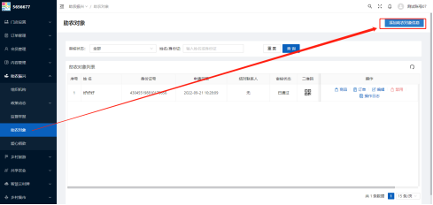 第一步:菜單欄的助農振興-助農對象,點擊【添加助農對象信息】。如下所示: